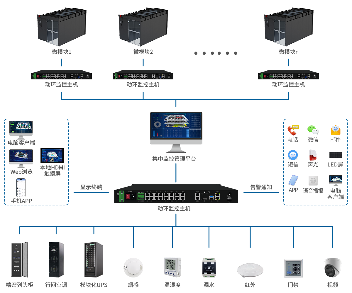 微模块动环监控系统是针对模块化数据中心设计的精细化监控管理平台,实现对微模块内动力、环境、安防等要素的全面感知和智能调控。