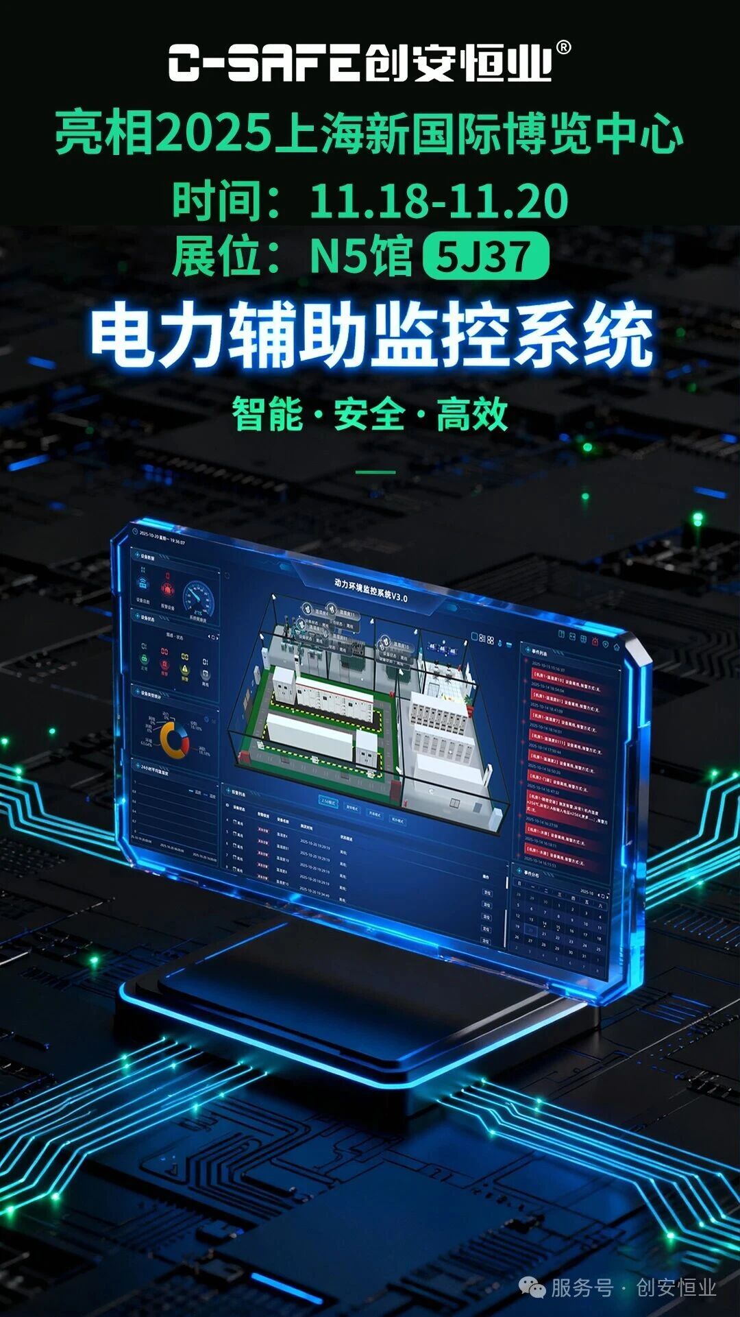 11月18日至20日,欢迎各位行业同仁亲临上海新国际博览中心N5馆5J37展台,实地体验创安恒业的前沿技术与解决方案,共同探讨电力行业智能监控的未来发展。