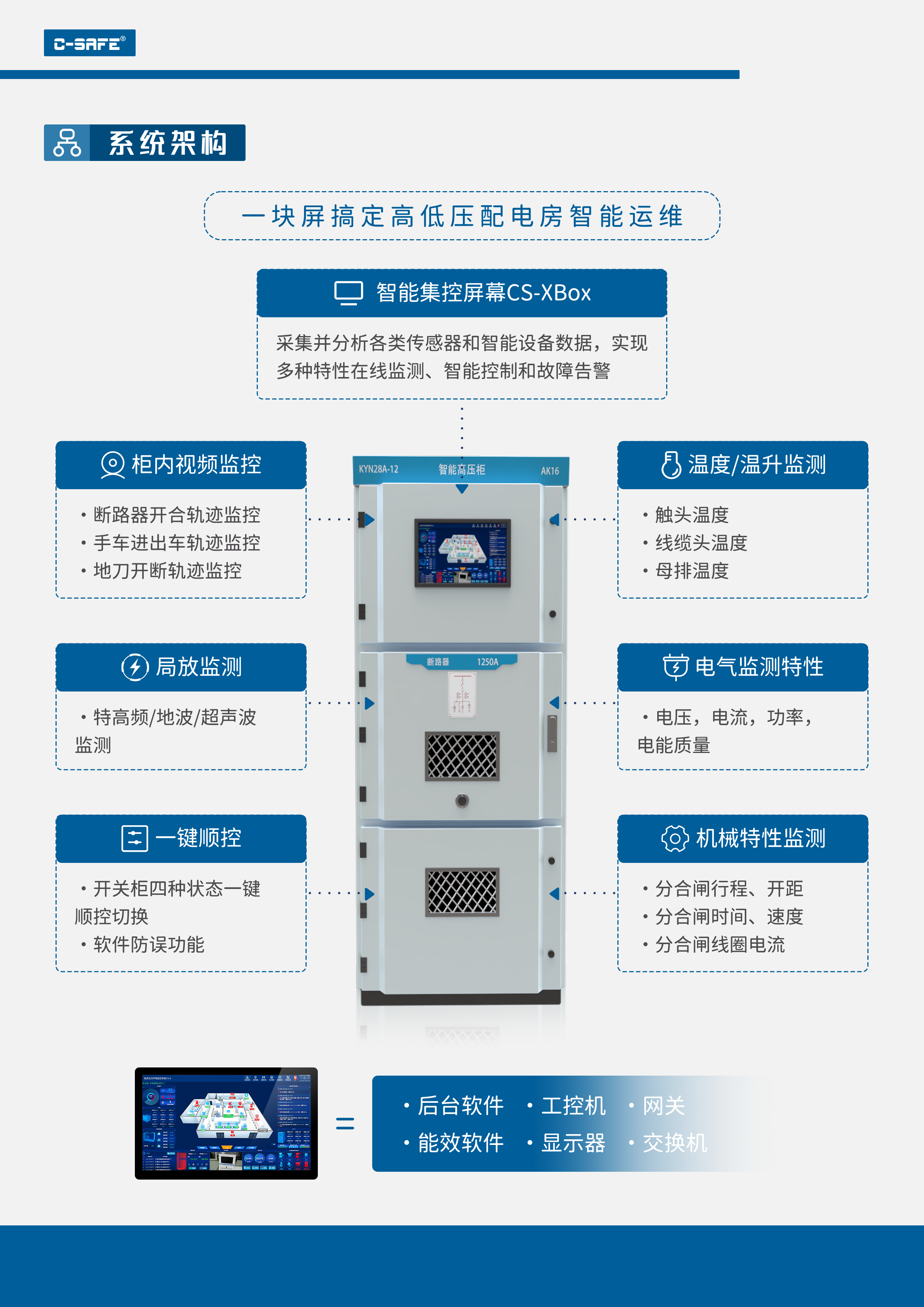 智慧高压柜系统解决方案,结合传统高压柜与智慧触控屏,集成的多种数字化监控功能,帮助用户以全新的方式操作和管理高压柜,能及时预警,避免故障的发生。